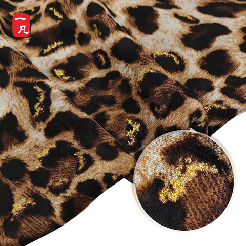 Tại chỗ Bronzed sáng bóng báo in 75D ngọc trai chiffon 100% Polyester Vải cho phụ nữ bãi biển quần áo