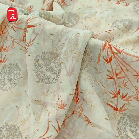Trung Quốc Phong Cách Hoa In 75D Ngọc Trai Voan Tại Chỗ Bronzed Vải Cho Phụ Nữ Vải Sườn Xám